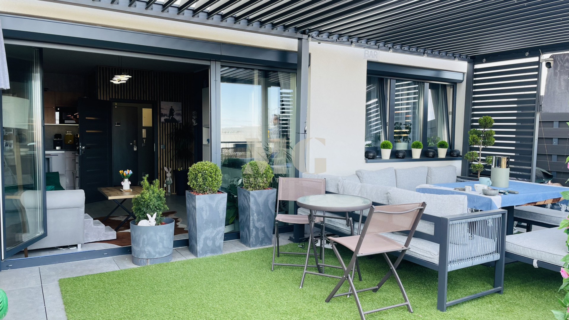 Zprostředkujeme prodej nadstandardně vybavené bytové jednotky 2+kk ve 2.NP o výměře 48,38 m2 s velkorysou terasou o výměře 38,4 m2, sklípkem o výměře 4 m2 a krajovým garážovým parkovacím stáním v 1.PP novostavby rezidenčního objektu se dvěma výtahy v ul. Arménská Kladno. Součástí bytu je i jeho nadstandardní vybavení, a to zejména klimatizační jednotka zn. Hitashi, klimatická dálkově ovládaná pergola 6 x 3 m, dálkově ovládané před okenní žaluzie. Plně vybavená kuchyně linkou zn. Oresi s lednicí a mrazákem zn. Samsung, digestoř, indukční varná deska, el. trouba, mikrovlná trouba, myčka vše zn. Gorenje, dřez a výsuvná baterie zn. Franke, dále barový stůl a židle, TV stěna a menší úložné skřínky. dálkově stmívatelné stropní osvětlení a v ložnici prosklená rohová šatní skříně. Případné další vybavení a designová dekorace dle vzájemné dohody. Pro více informací a možnostech výhodnějšího financování doporučujeme osobní prohlídku.